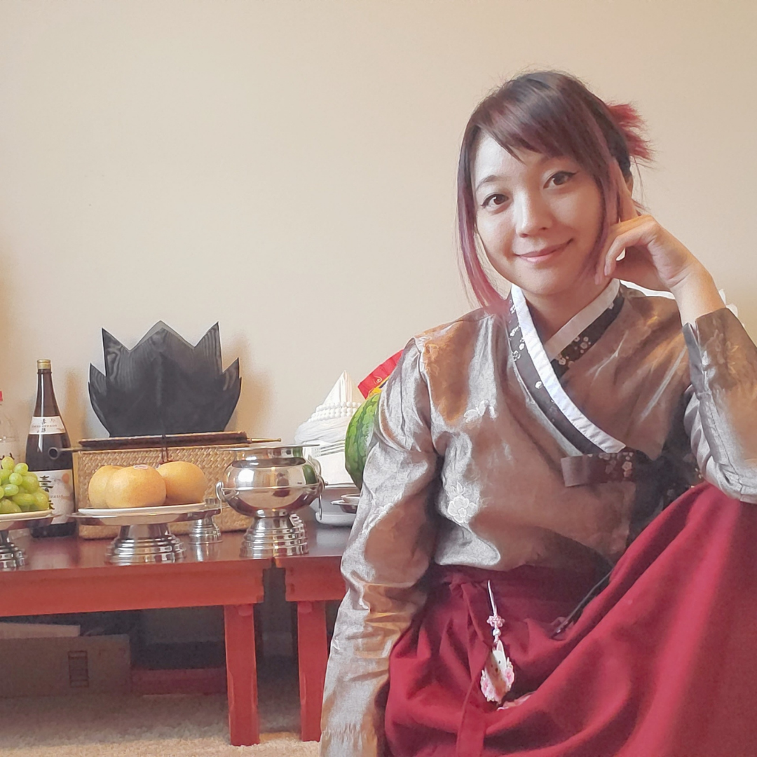 The Mudang is an ordained shaman-priest in the indigenous korean tradition Mugyo (otherwise known as korean shamanism). She was born in Seoul, South Korea and moved to the United States when she was about 6 years old. Throughout her childhood, she interacted with local spirits but never in such a way that scared her parents. She began to delve into witchcraft at the age of 11 years old. By the time middle school came, she began to suffer spirit sickness. Only about ten years later did her ancestors start visiting her and showing her visions of things she couldn't have known about, and at that point reached out to mudangs to become vetted and begin the process of initiation and training in 2017.